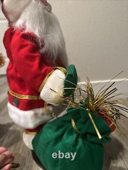 Celebrate the holiday season with this charming set of two Annalee Santa Claus dolls. Crafted with care from cloth and felt, these vintage 18-19 inch figures depict Mr and Mrs Claus carrying bags of presents. Their bright blue eyes and light complexions perfectly capture the character of these beloved Christmas icons.